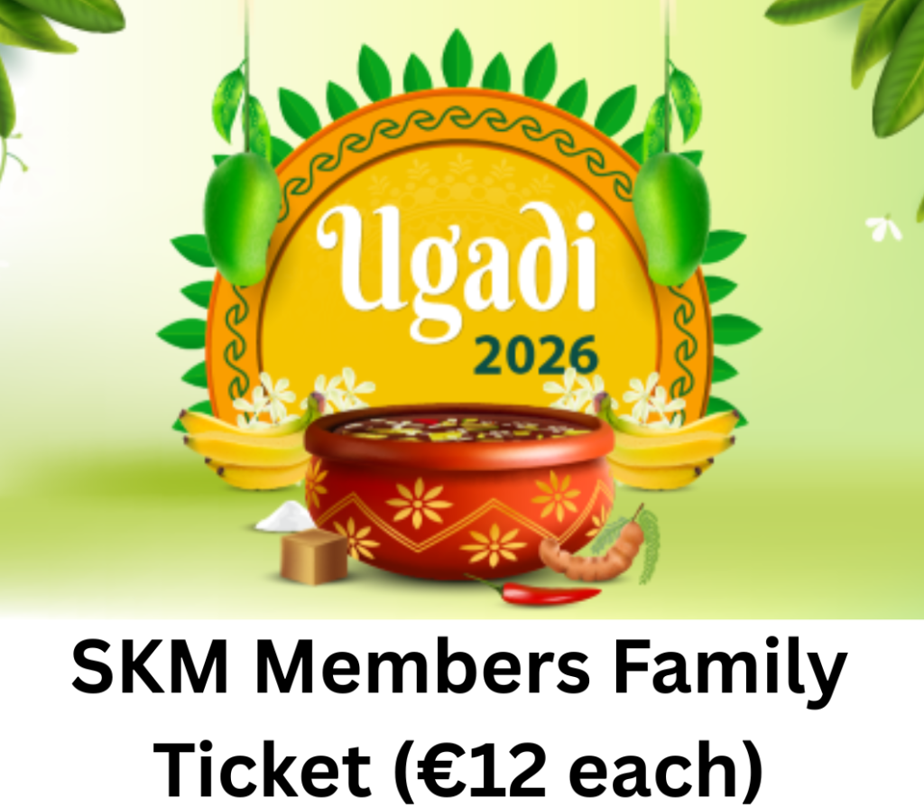 Ugadi 2026 SKM Members Ticket Shop Event: Ugadi 2026Date: Saturday, April 25th, 2026Time: 9:00am – 1:00pmVenue: EineWeltHaus, Schwanthalerstraße 80, 80336 München Buy Now! Buy Now! Buy Now! Buy Now! Buy Now!